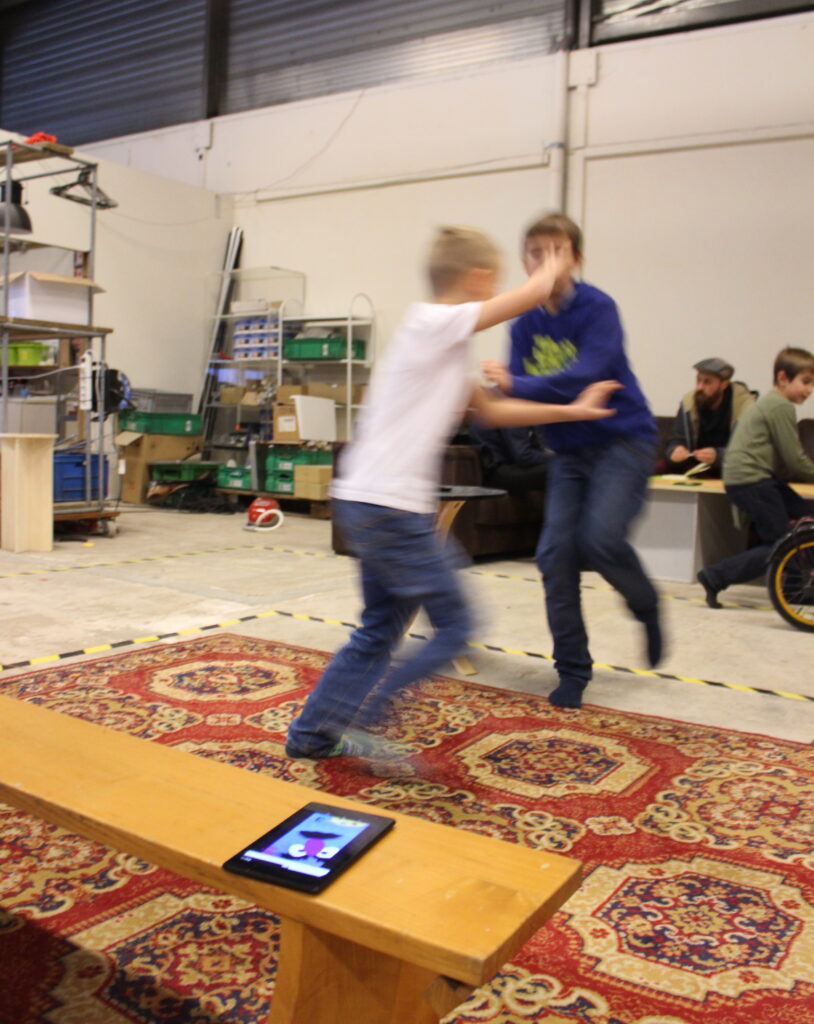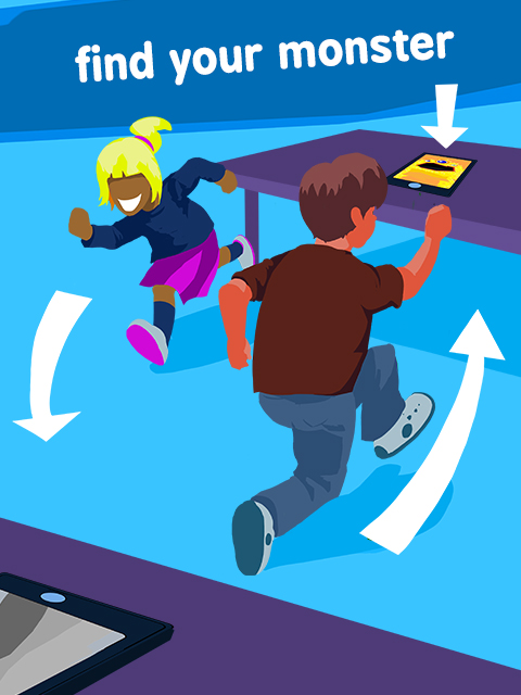 However, the monsters have a mind of their own. Sometimes they jump from one device to another. When that happens, players must run across the room to keep up.