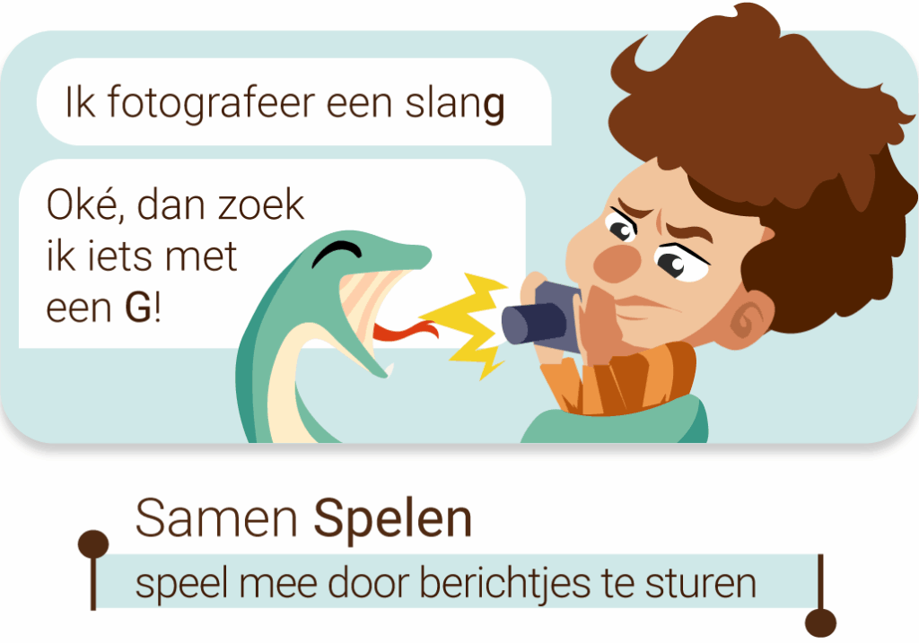 Samenspelen is a text-based game environment inside a chat interface. Players can start word games, emoji puzzles, or photo challenges instead of regular messages.